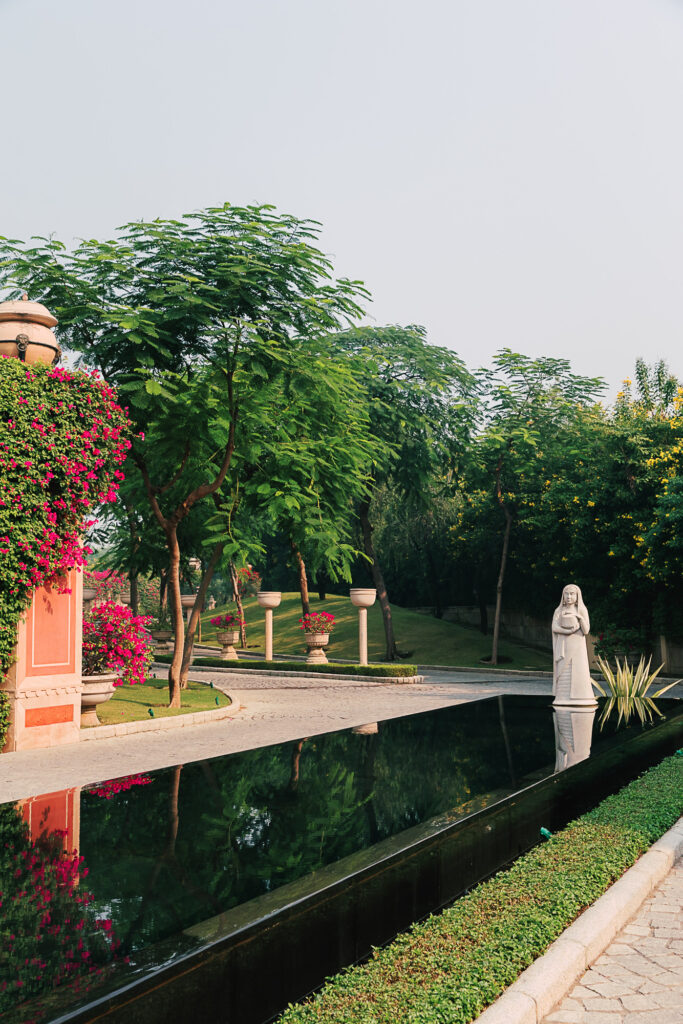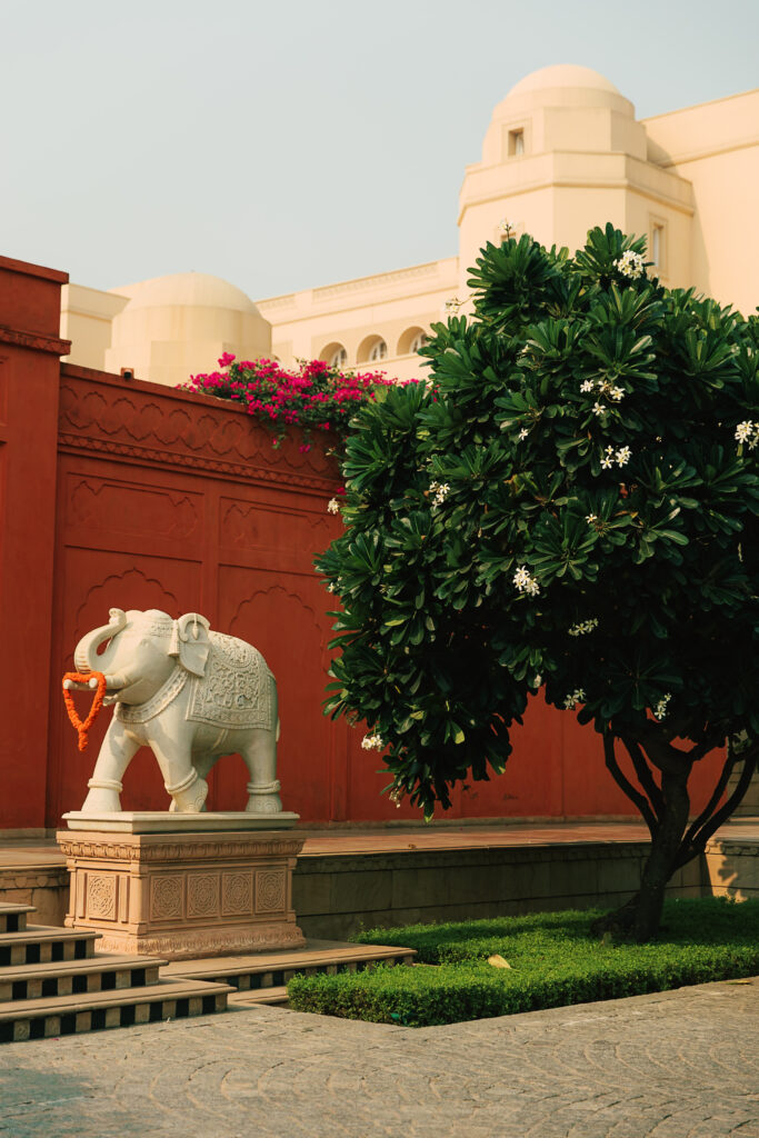 The rooms and suites are spacious, serene, and inspired by Mughal design, without feeling heavy or dated. Think large windows, soft light, elegant modern interiors, and an atmosphere that immediately calms you down, no small feat in Agra.